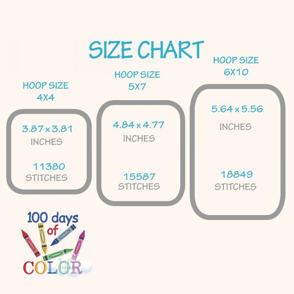 Celebrate creativity with this 100 Days Color School Embroidery Design, featuring playful crayons for boys and girls. Instantly download this machine embroidery design for fun and colorful school projects 🖍️🎉