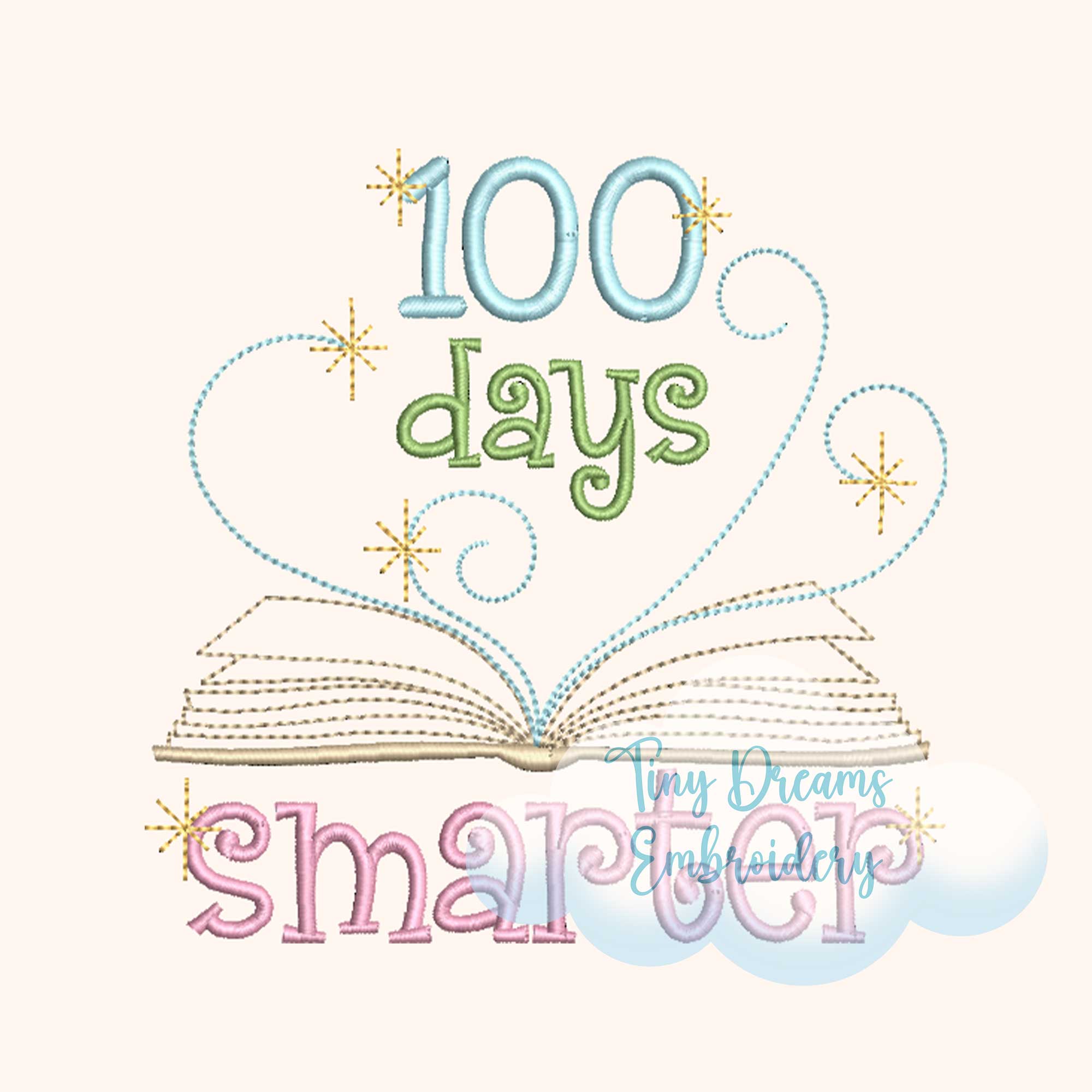 Celebrate learning with this 100 Days Smarter Embroidery Design, featuring a book and shining school theme. Instantly download this machine embroidery design for fun and inspiring girl projects 📚✨