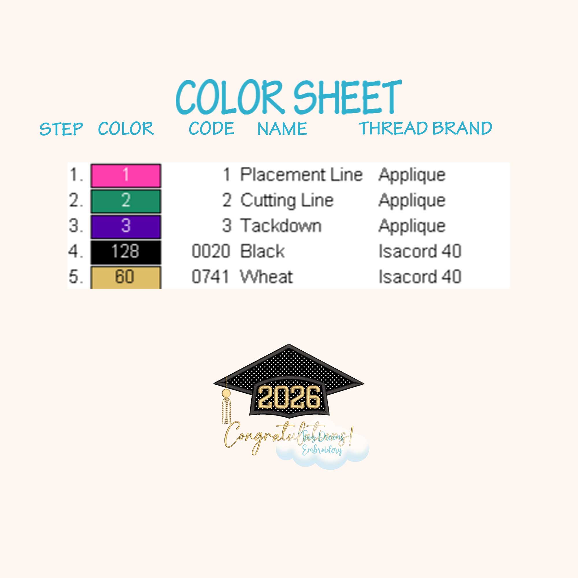 Celebrate the class of 2026 with this Graduation Cap Appliqué Digital Machine Embroidery Design, perfect for boys and girls alike. Ideal for prom outfits, grad gifts, and celebration keepsakes, it adds a festive touch to any 2026 milestone.