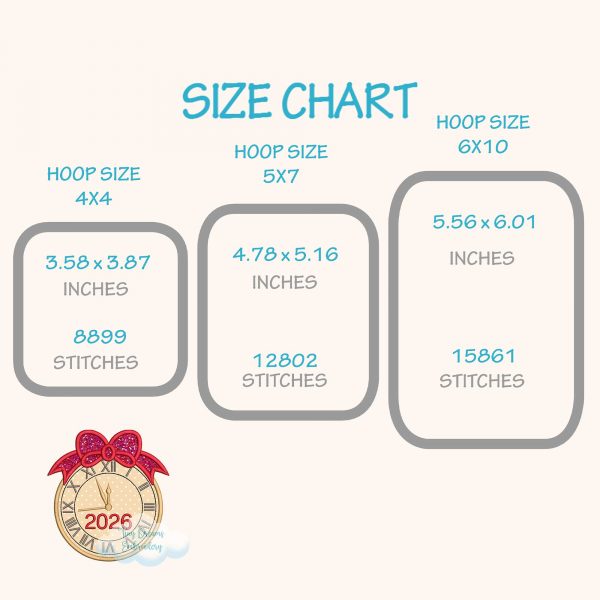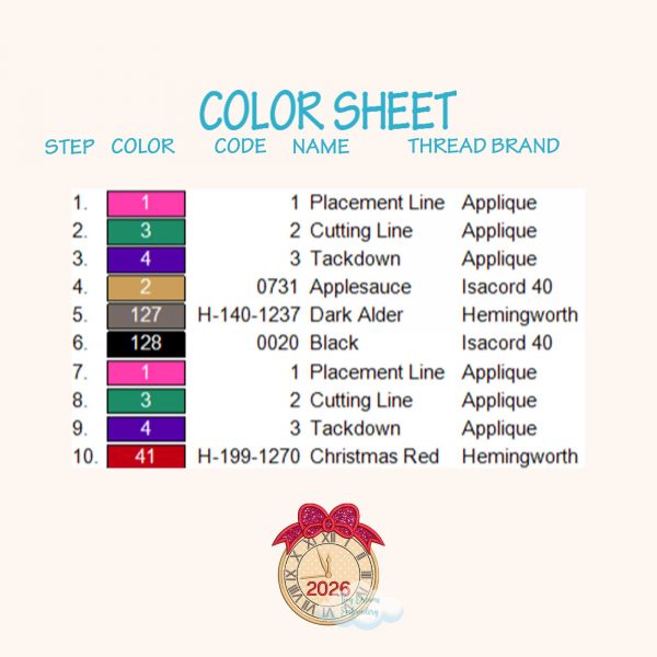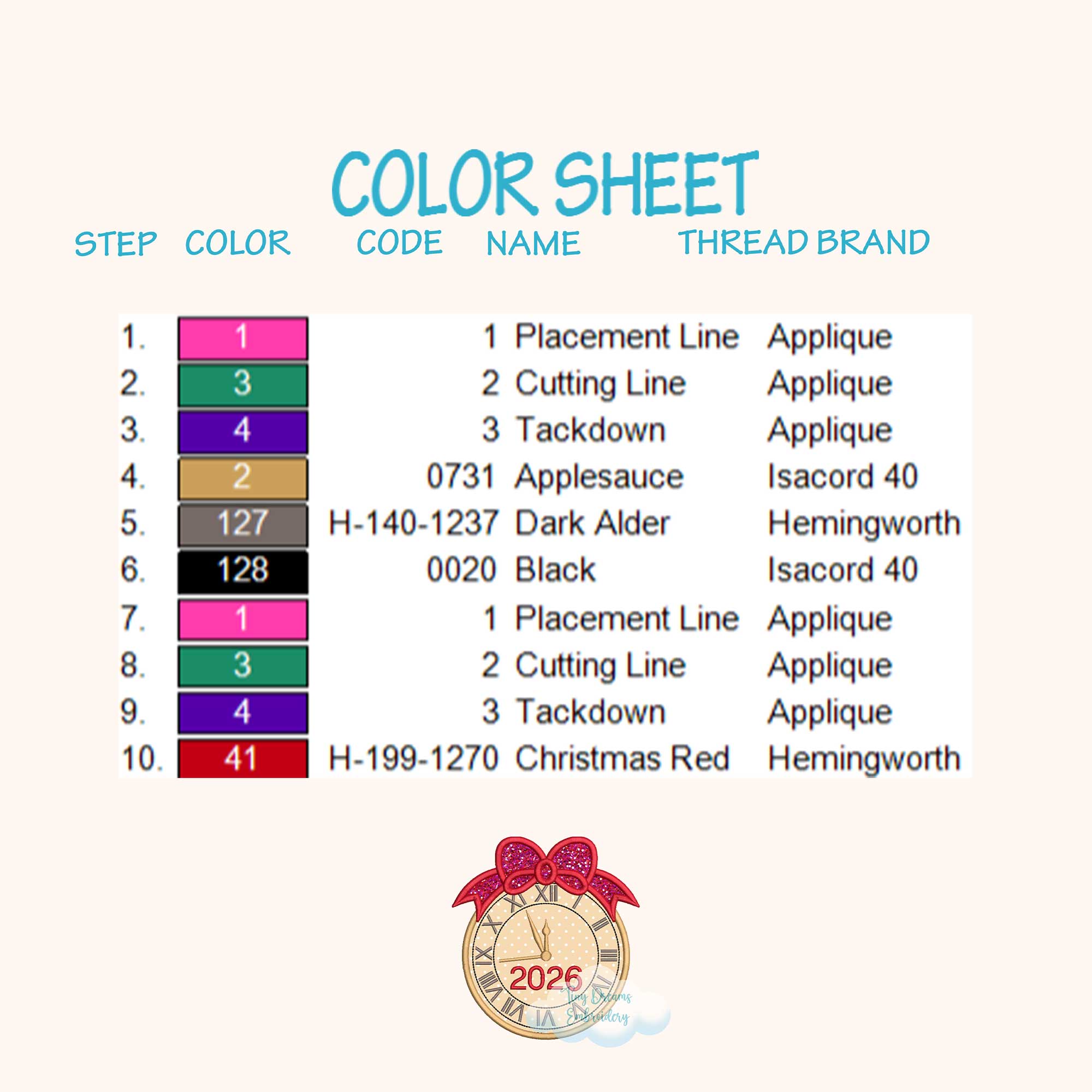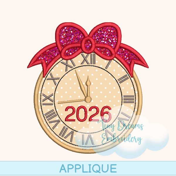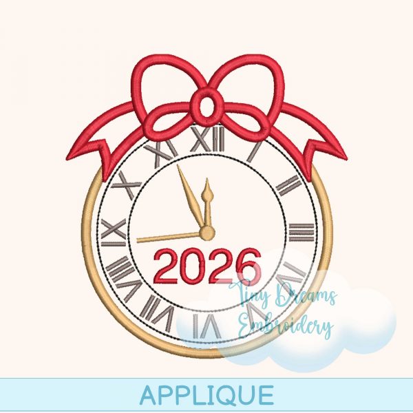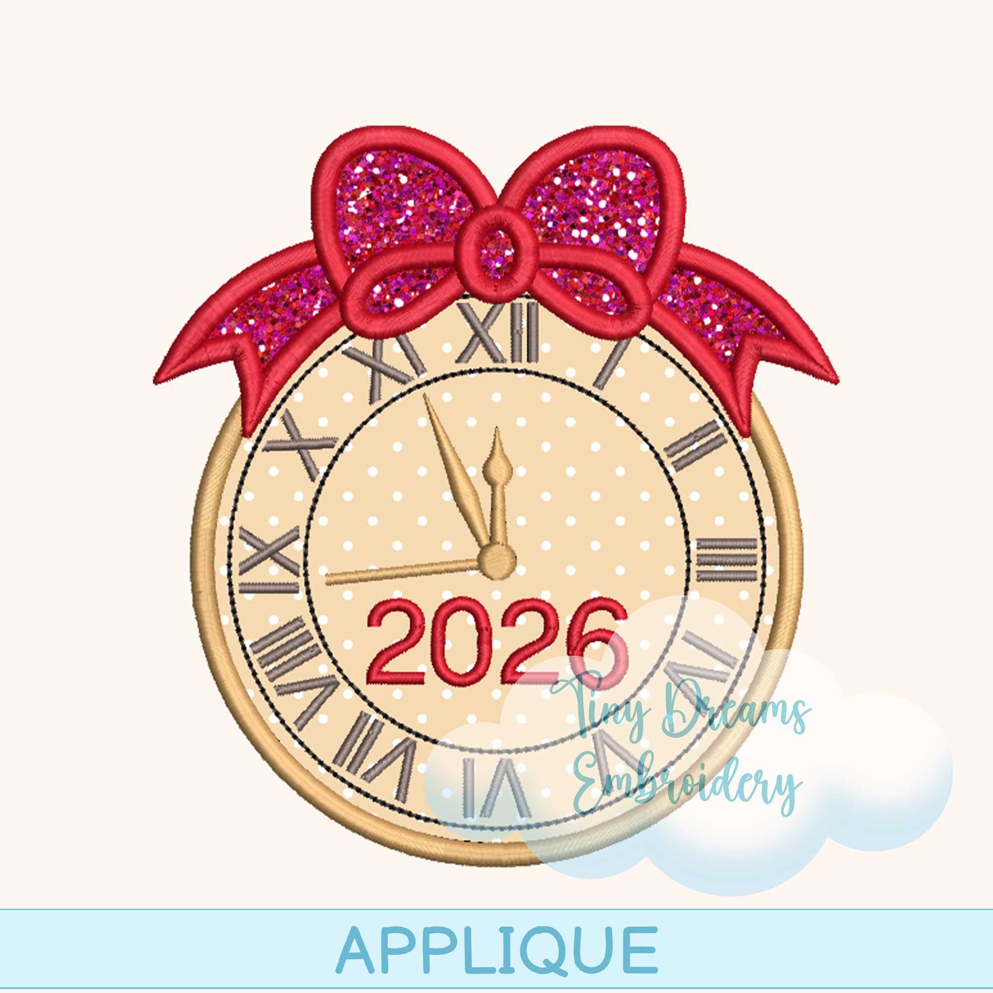Ring in the celebration with this 2026 Happy New Year Applique Embroidery Design, featuring a festive clock, bow, and holiday charm. Instantly download this machine embroidery design for sparkling Christmas Eve and New Year projects 🎆🎀