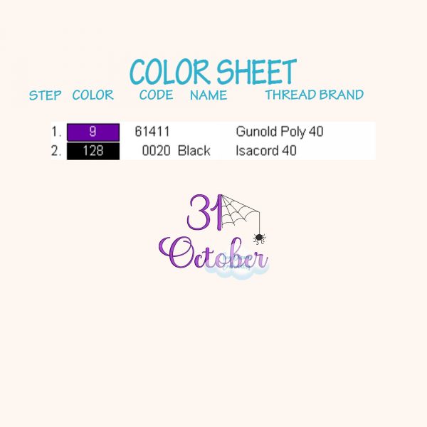 Get ready for spooky season with this ’31 October’ digital embroidery design. Featuring a spider and spiderweb details, it’s perfect for fun and festive Halloween stitching! 🕷️🎃