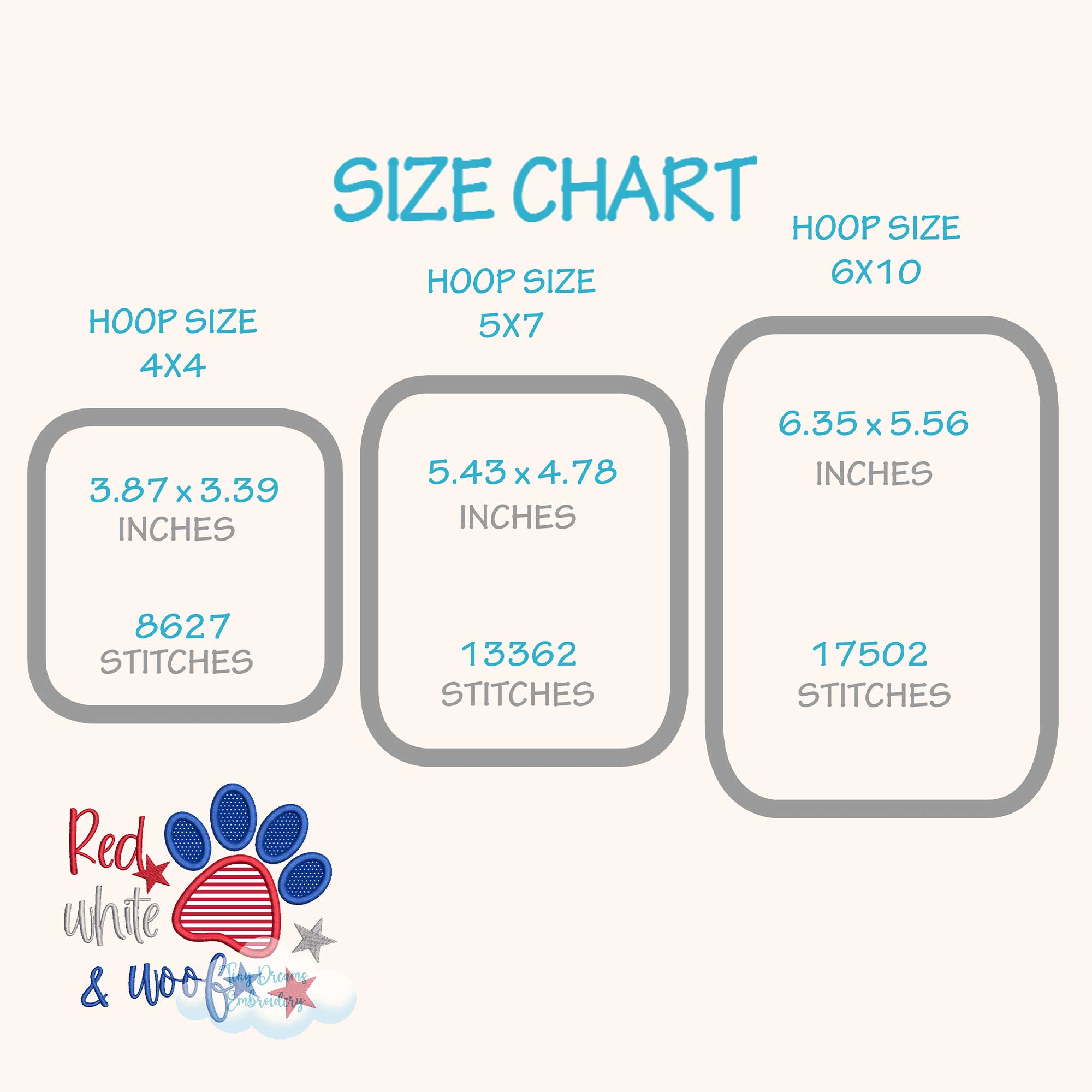 Celebrate the 4th of July with this adorable American Flag Dog Applique digital machine embroidery design. Featuring patriotic paw prints and stars, it’s perfect for adding a festive touch to your furry friend’s gear or holiday projects.