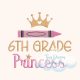 6th Grade Princess Digital Machine Embroidery Design Princess Crown Girl Embroidery Design Back School Design Sixth Grade Crayon Embroidery