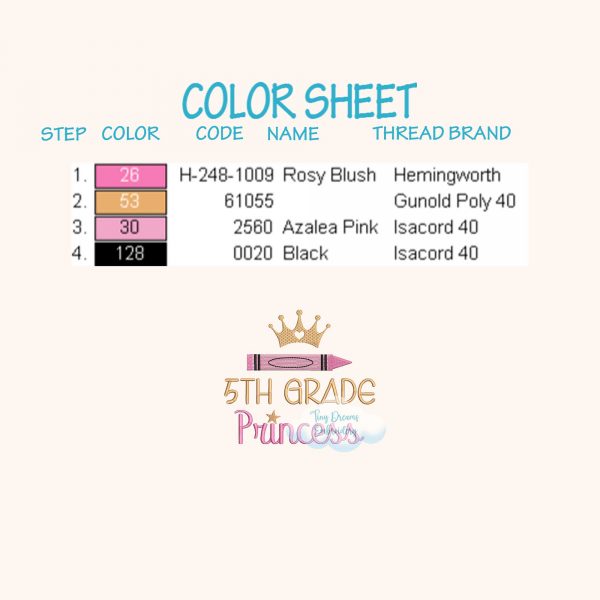 Be the first to review “5th Grade Princess Digital Machine Embroidery Design Princess Crown Girl Embroidery Design Back School Design Fifth Grade Crayon Embroidery”