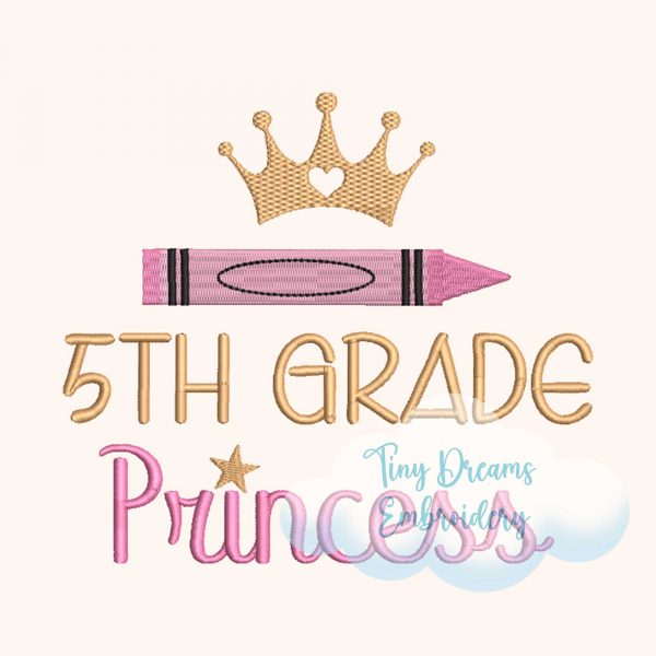 5th Grade Princess Digital Machine Embroidery Design Princess Crown Girl Embroidery Design Back School Design Fifth Grade Crayon Embroidery