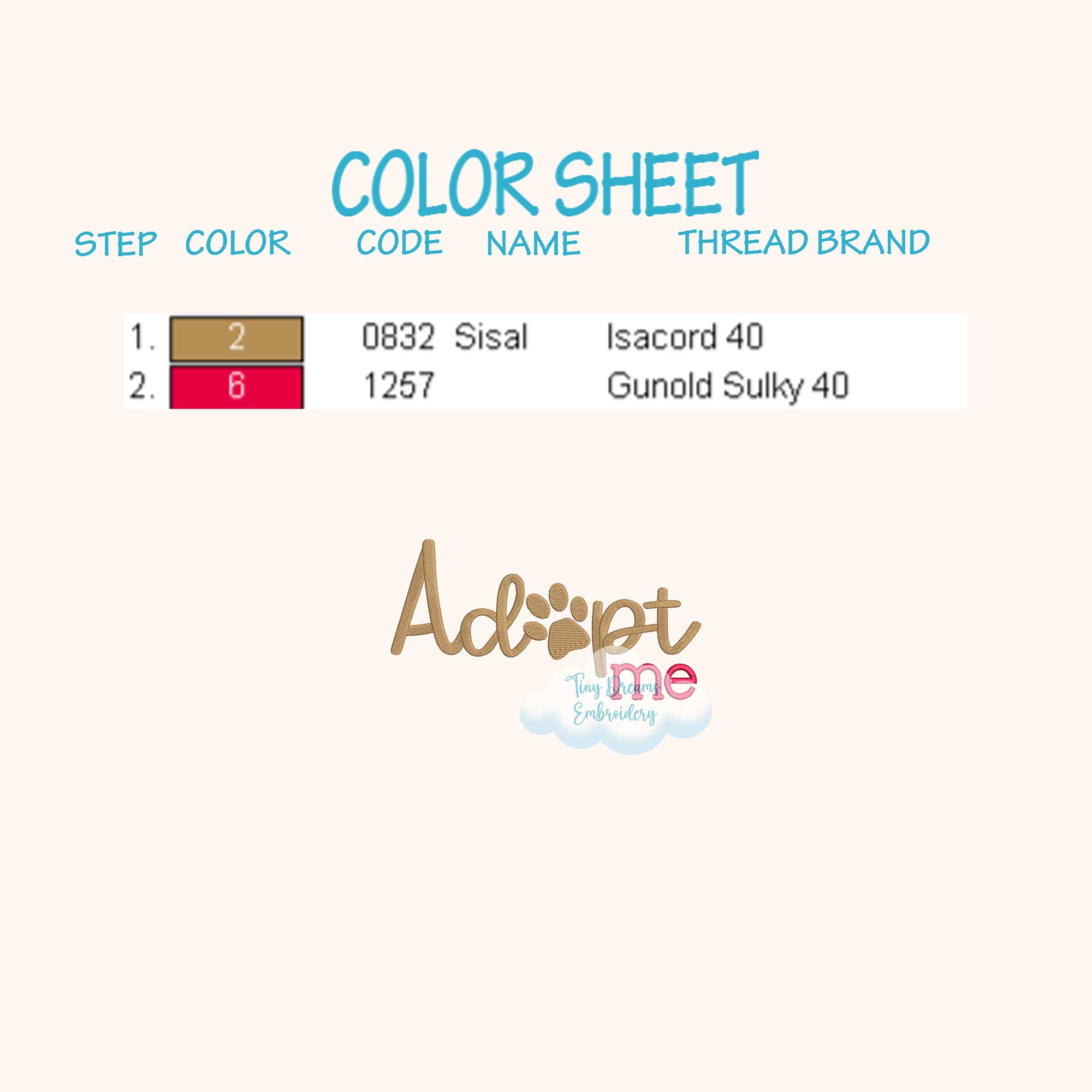 Adopt Me dog paw print embroidery design, perfect for pet lovers and rescue themed projects.