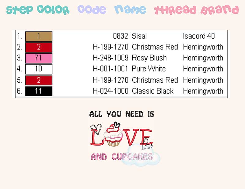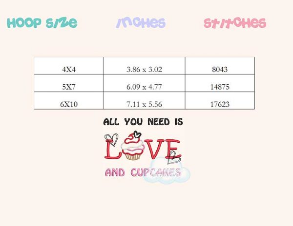 Be the first to review “All you need is love and cupcakes embroidery design”