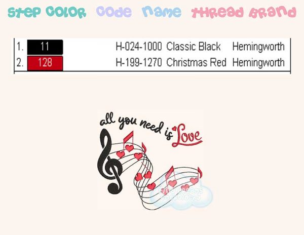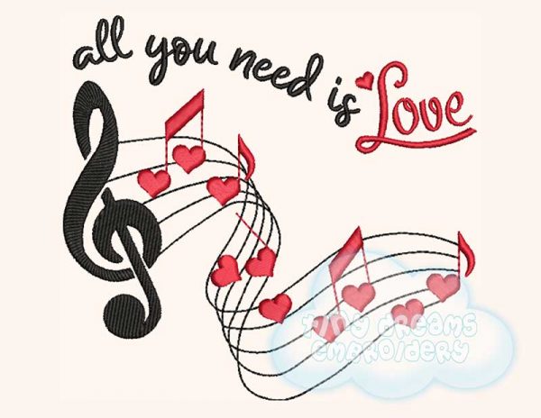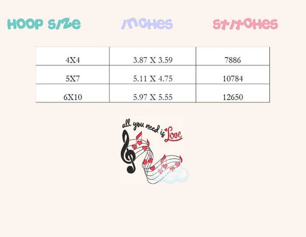 Be the first to review “All you need is love musical hearts notes embroidery design”