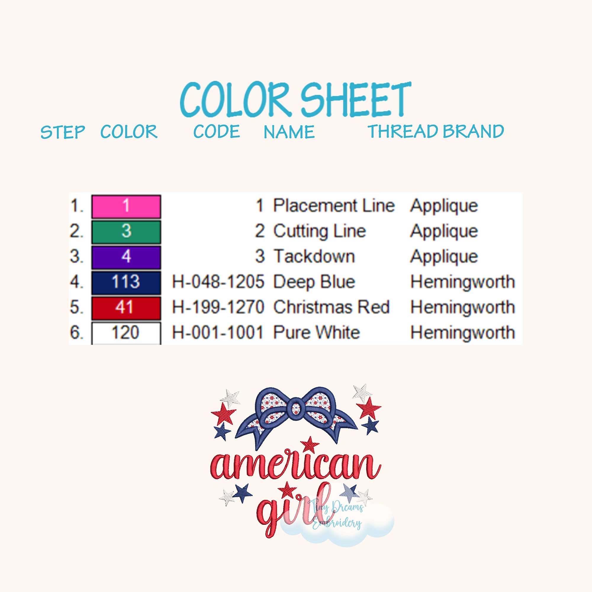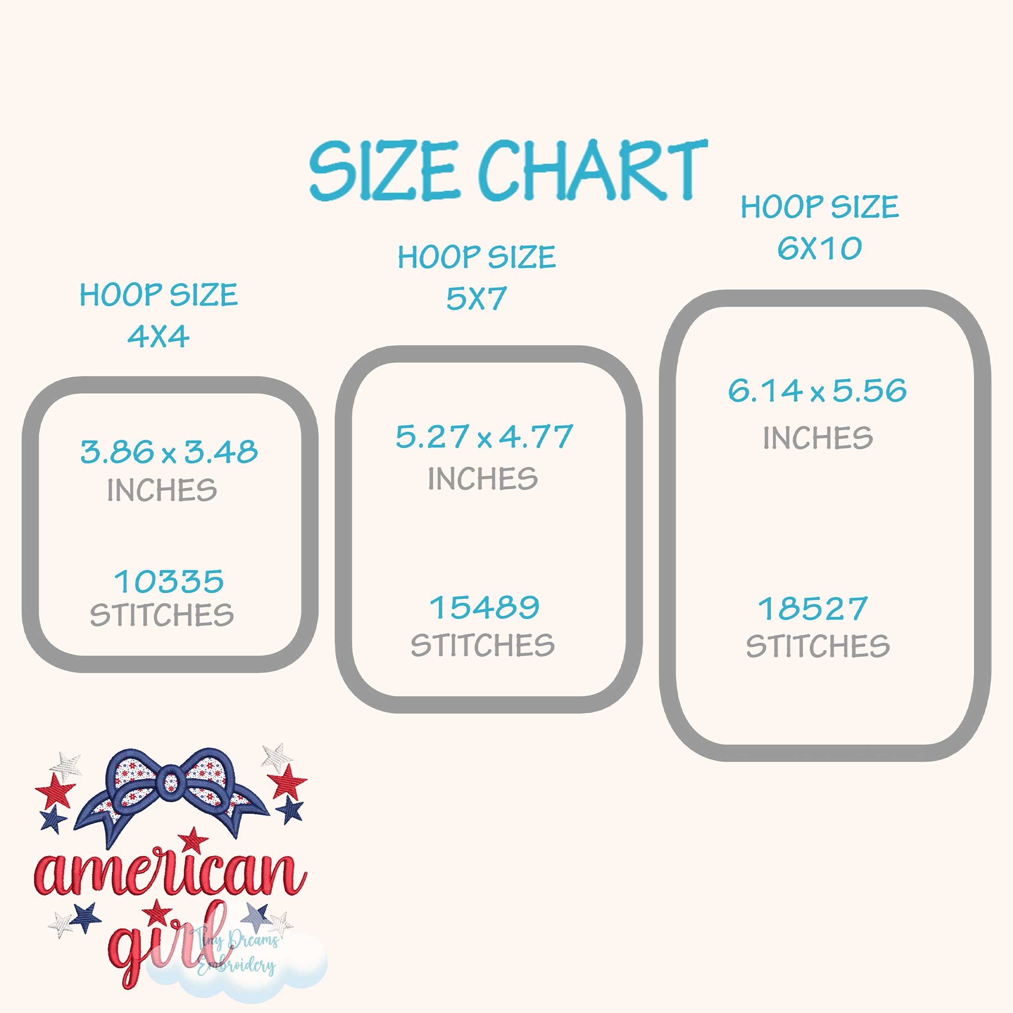 Show off your patriotic spirit with the American Girl Appliqué Digital Machine Embroidery Design, featuring a cute bow and star accents. Perfect for celebrating the USA in style, this design adds charm to shirts, totes, and festive outfits.