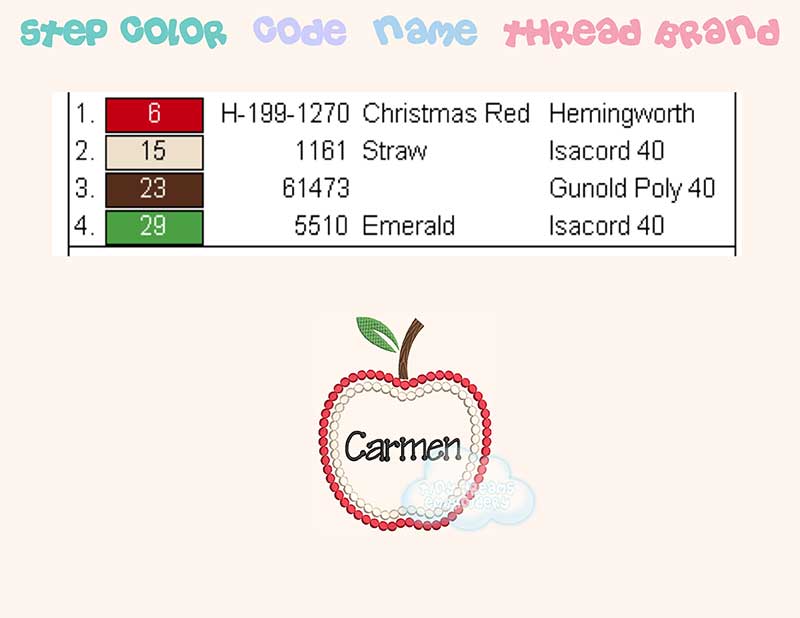 Apple monogram/name (name/monogram/font not included) embroidery design