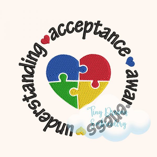 Create a meaningful digital machine embroidery design that fosters understanding and acceptance with an “Autism” theme, promoting awareness and love. This embroidery piece delicately weaves together elements of hope and understanding, delivering a powerful message of support for individuals and families touched by autism.