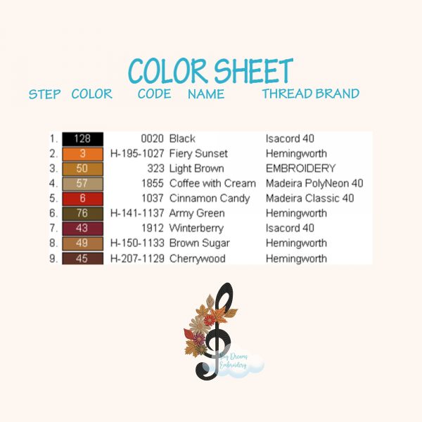 Celebrate the season with this Autumn Fall Music Embroidery Design, featuring a treble clef surrounded by autumn leaves. Instantly download this machine embroidery design for creative and musical fall projects 🍂🎵