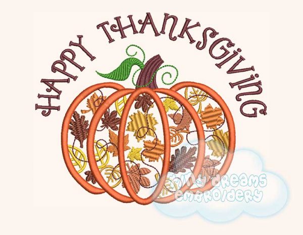 Happy Thanksgiving autumn pumpkin with leaves embroidery design
