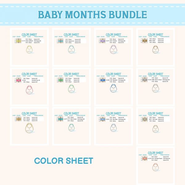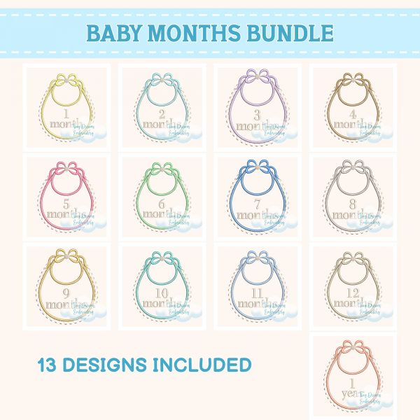 Celebrate the journey of your little one’s first year with our Baby Months Bundle, featuring charming embroidery designs for each precious milestone. This collection includes 13 delightful motifs, making it ideal for creating cherished keepsakes and adorable baby bibs.