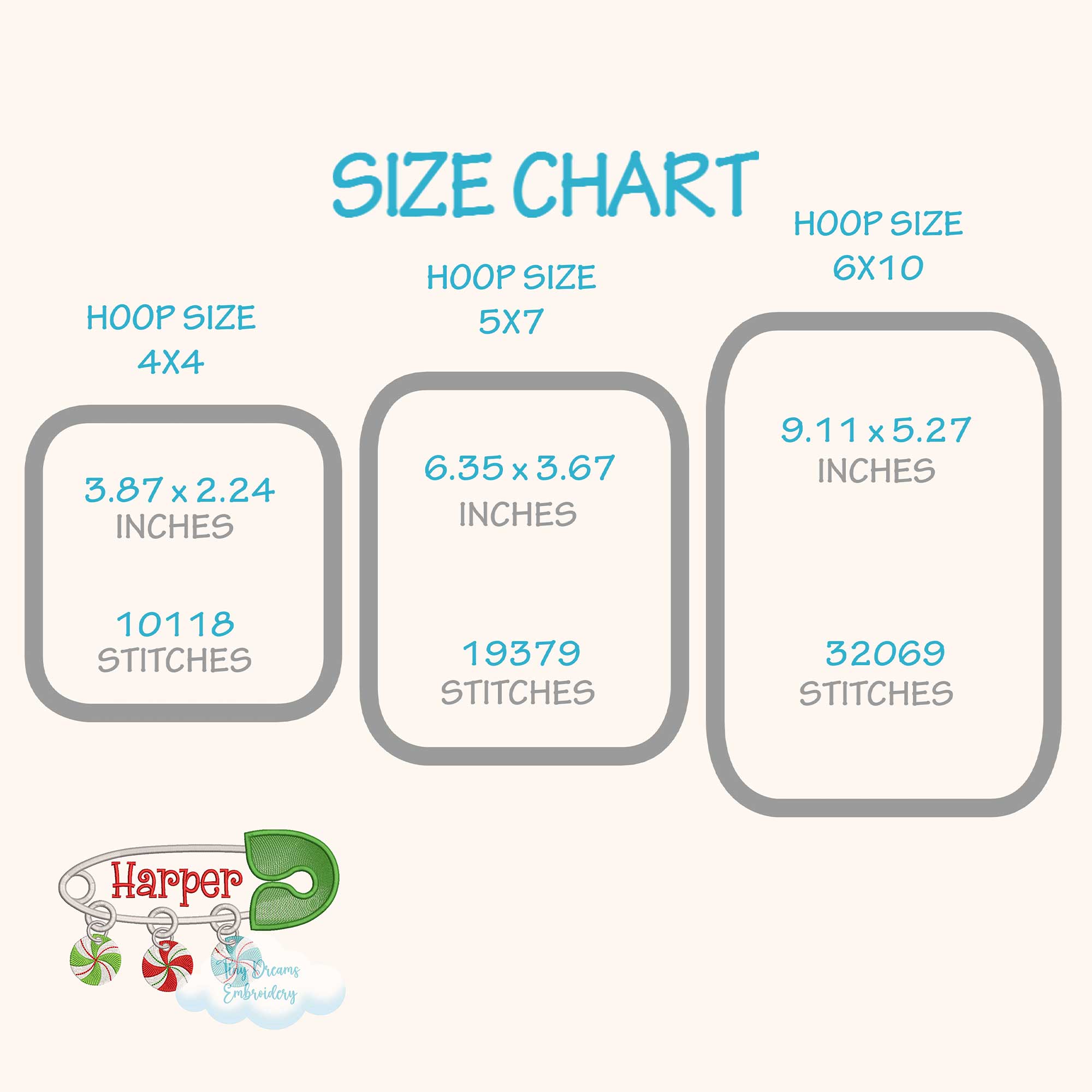 This Baby Christmas digital machine embroidery design includes a baby safety pin and custom monogram, perfect for personalizing holiday projects. Add a festive peppermint candy touch along with your baby’s name to celebrate their first Christmas.