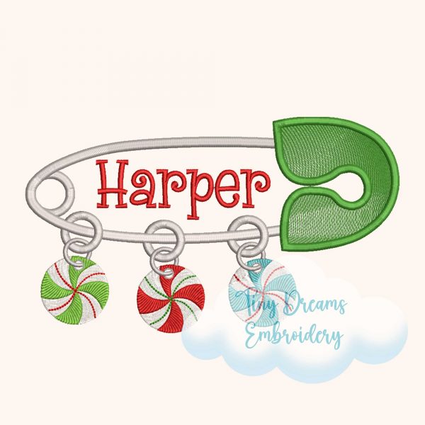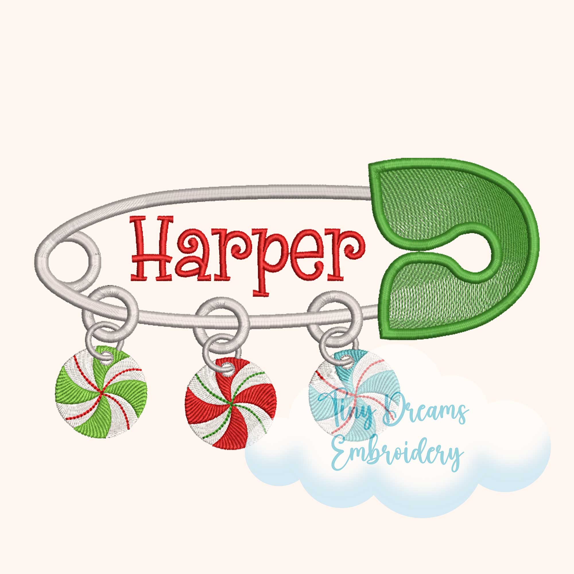Baby Christmas Digital Machine Embriodery Design Baby Safety Pin Custom Monogram Peppermint Candy Monogram Embroidery Baby Christmas Name