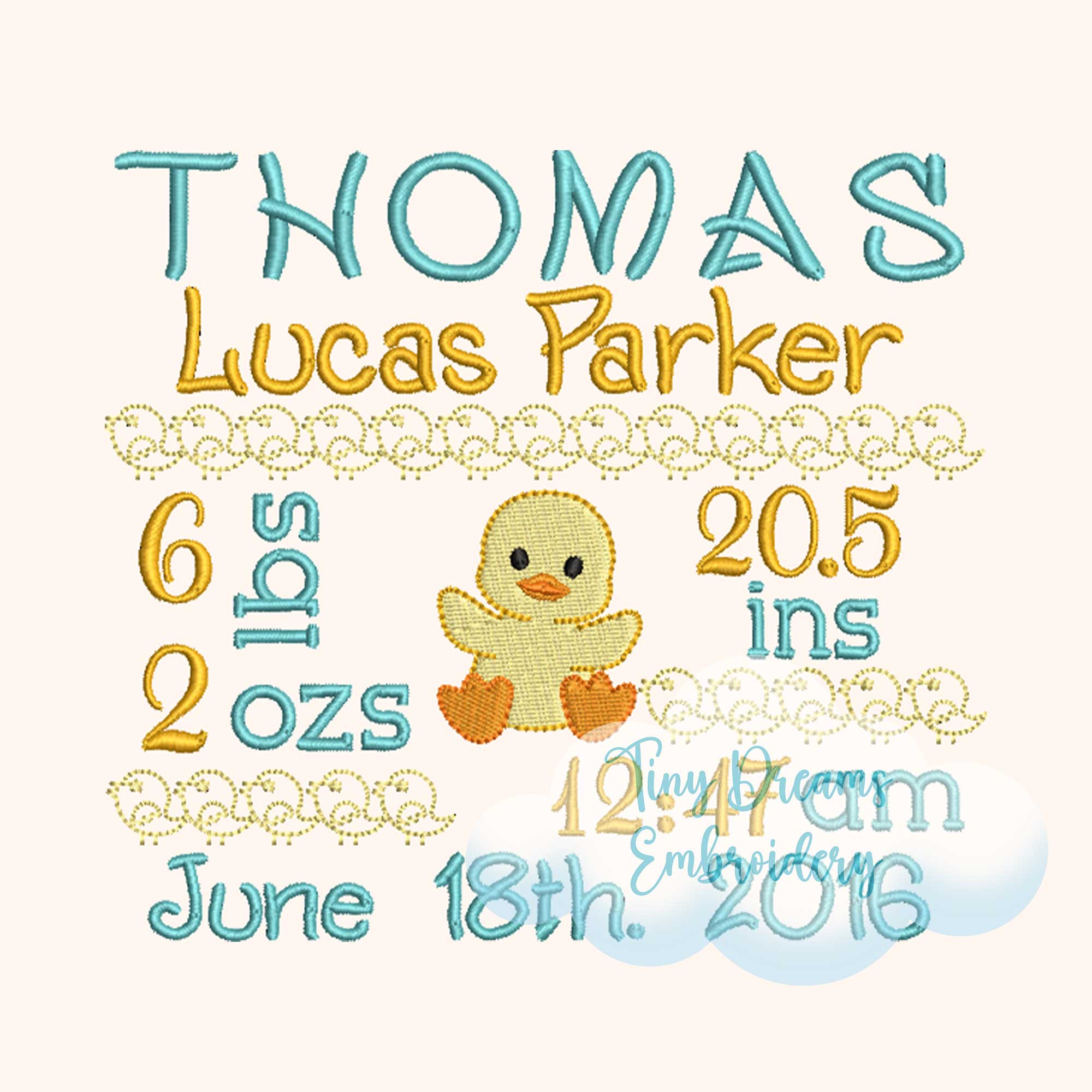 Baby Duck Birth Announcement Digital Machine Embroidery Design Baby Boy Newborn Embroidery Design Personalized Baby Announcement Duck Am Pm