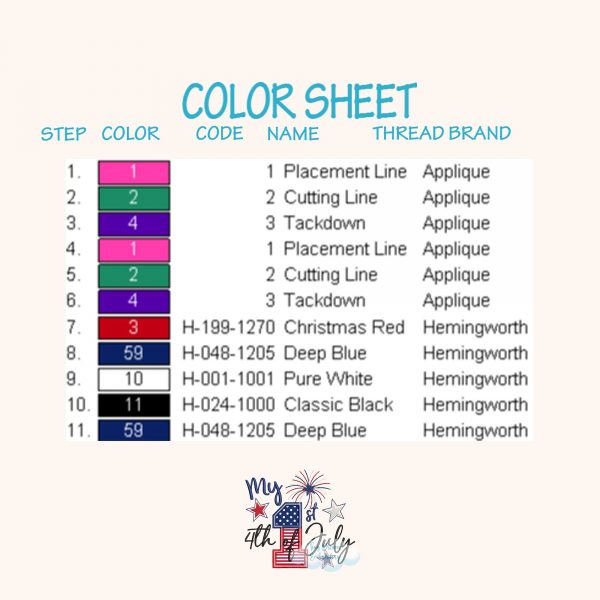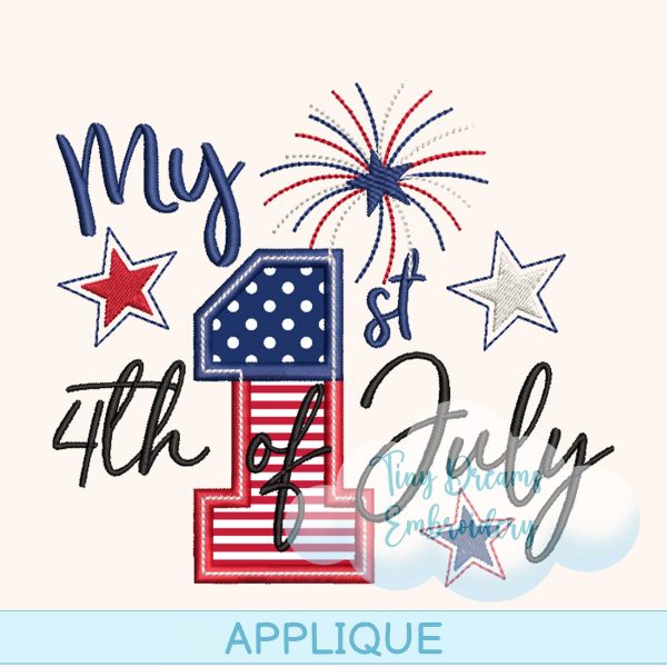 Celebrate a baby’s first 4th of July with a charming American flag applique digital machine embroidery design. This Independence Day embroidery design adds a festive touch to your little one’s special day.