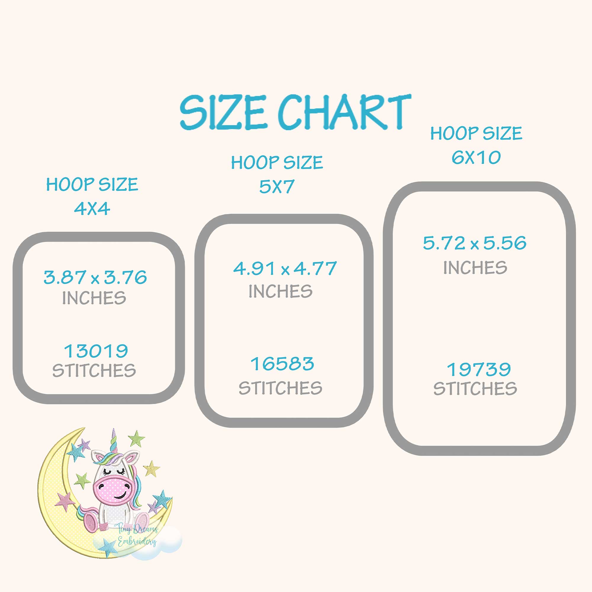 Create an enchanting digital machine embroidery design featuring a baby unicorn under the moon, perfect for adorable baby girl projects with magical star appliques. This charming design adds a touch of whimsy and wonder to your embroidery creations.