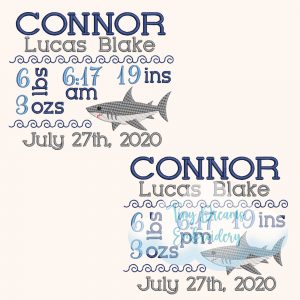 Make your big news extra fun with this Baby Shark Birth Announcement Embroidery Design, perfect for celebrating a newborn with a personalized touch. Ideal for keepsakes, blankets, clothing, and announcement projects, this digital download includes 2 sizes for adorable stitching. 🦈👶
