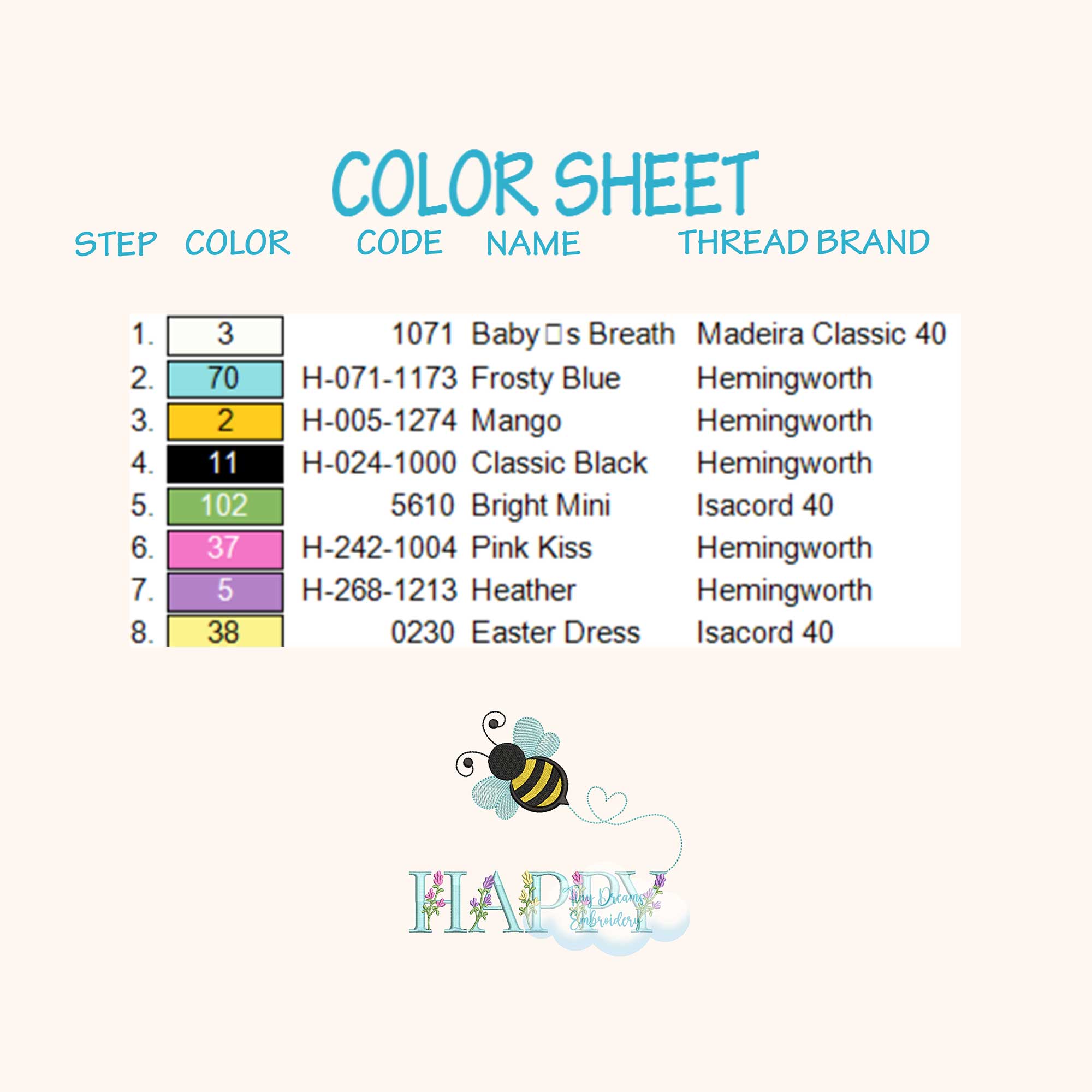 Create joyful moments with our ‘Be Happy’ digital machine embroidery design featuring a cute baby bee. Transform your projects with the vibrant charm of our floral spring embroidery design, including a delightful bee motif.