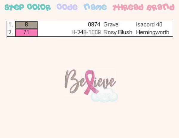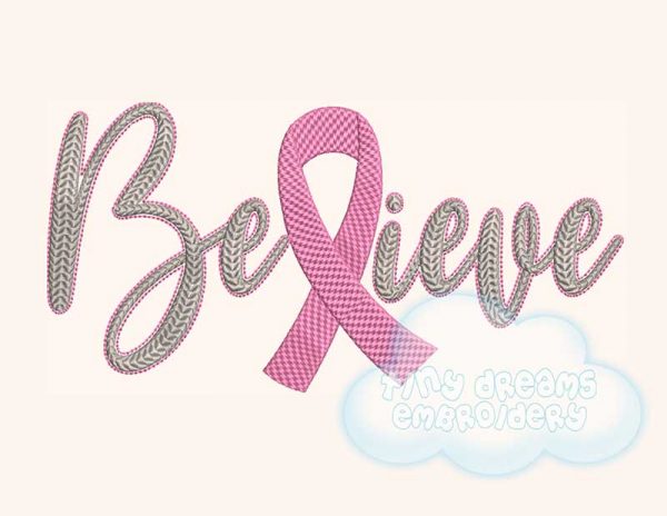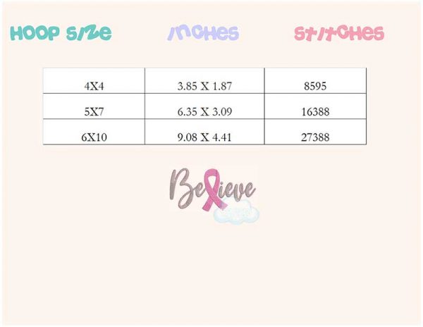 Be the first to review “Believe breast cancer awareness embroidery design”