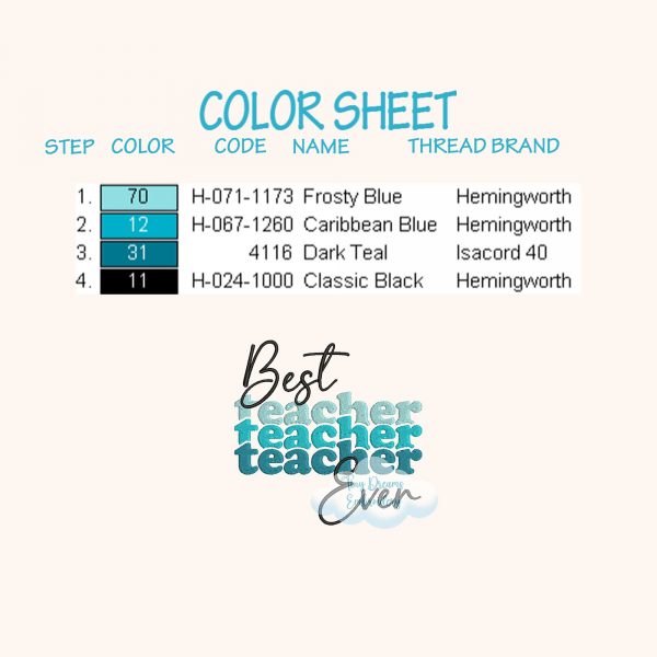 Show appreciation for educators with the “Best Teacher Ever” digital machine embroidery design, perfect for school and college. This unique embroidery design celebrates and honors the dedication of teachers.