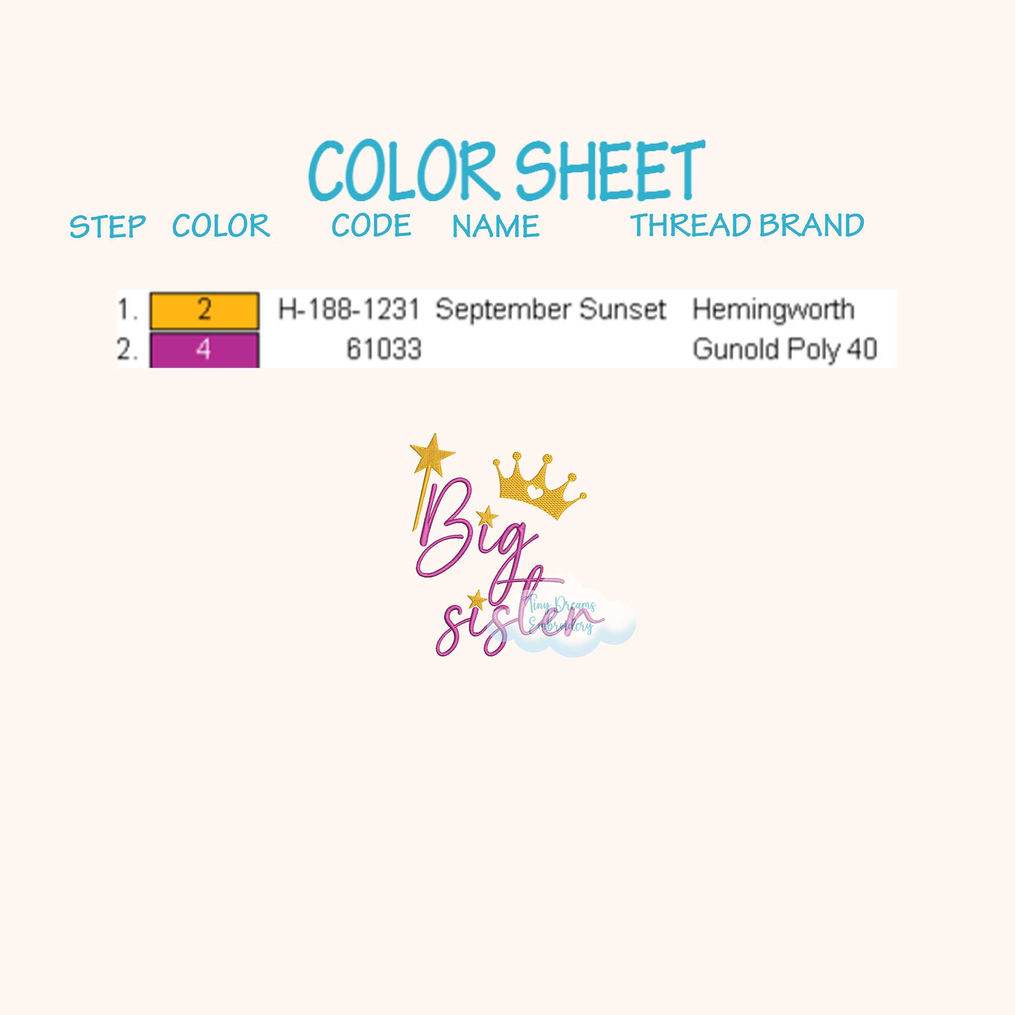 Celebrate sisterhood with the Big Sister Digital Embroidery Machine Design, featuring a magical wand and princess-inspired elements. This delightful design adds a touch of sparkle and charm to any project for your little star.