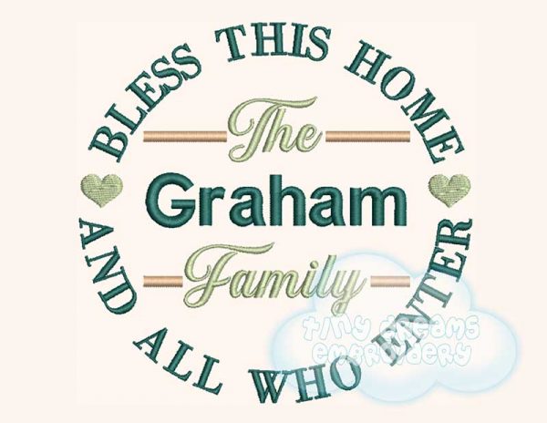Bless this home and all who enter family name/monogram (name/monogram/font not included) digital embroidery design