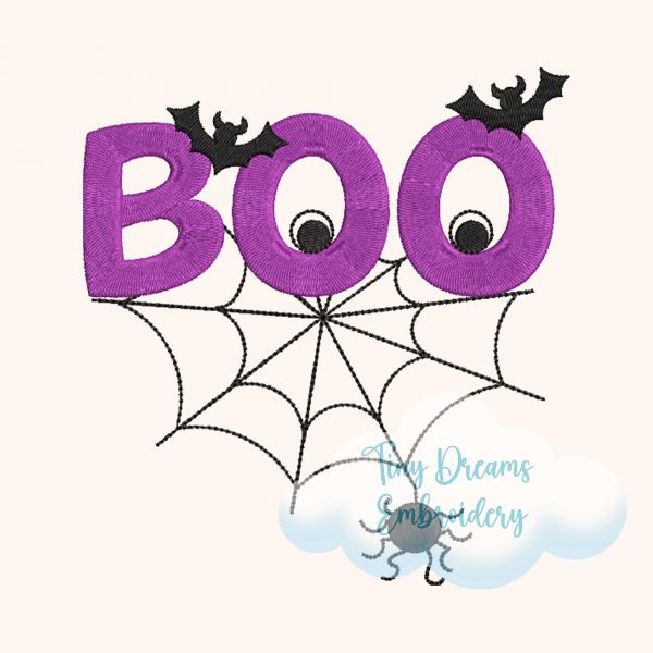 Get ready for Halloween with our Boo Halloween Digital Machine Embroidery Design. Featuring bats, spiderwebs, and spiders, this spooky design is perfect for the season.