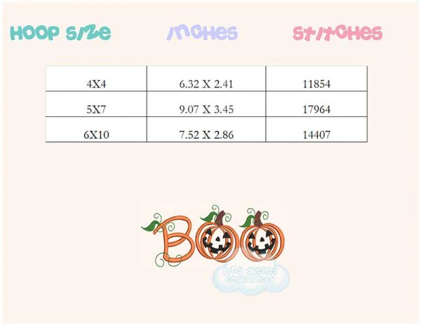 Be the first to review “BOO Halloween pumpkins embroidery design”
