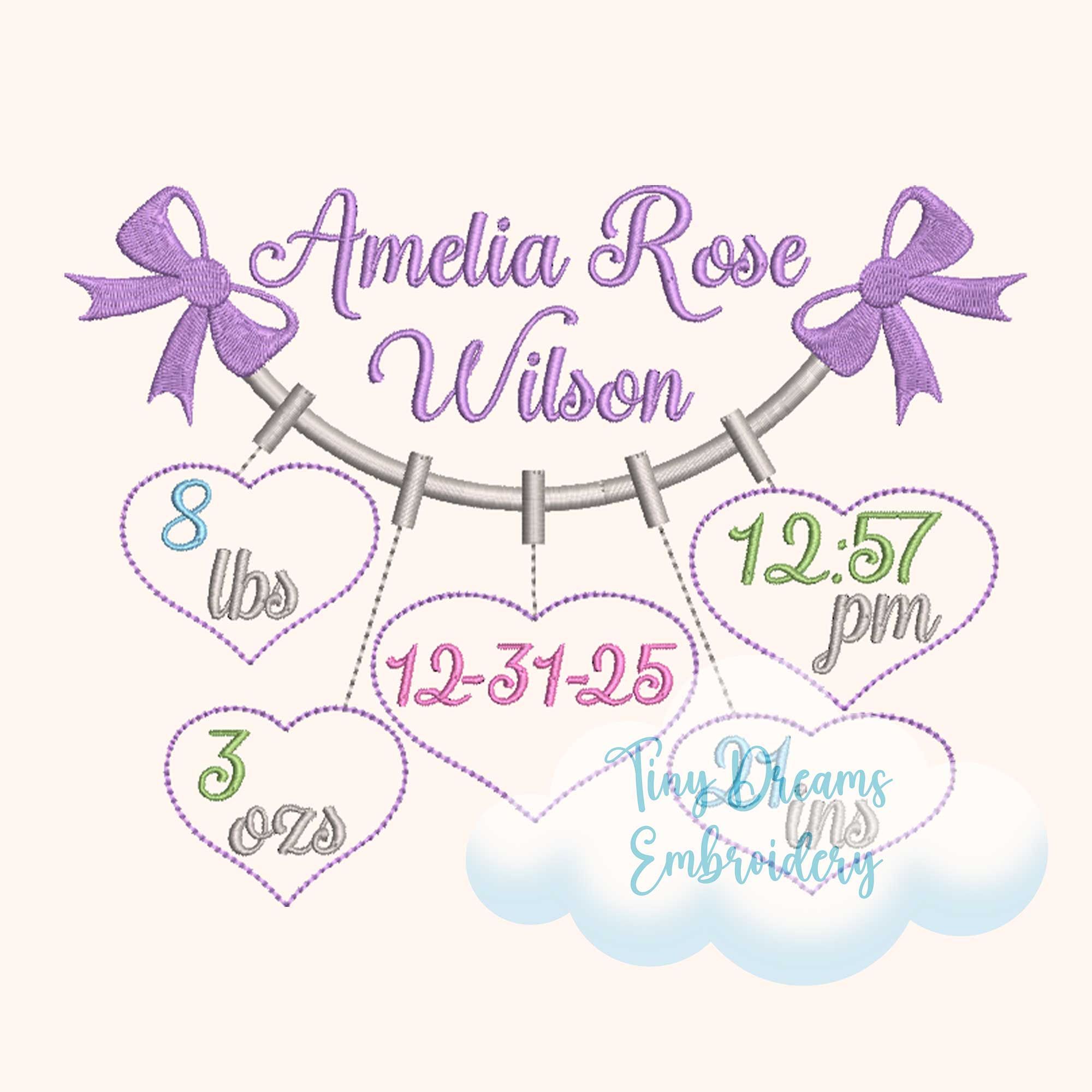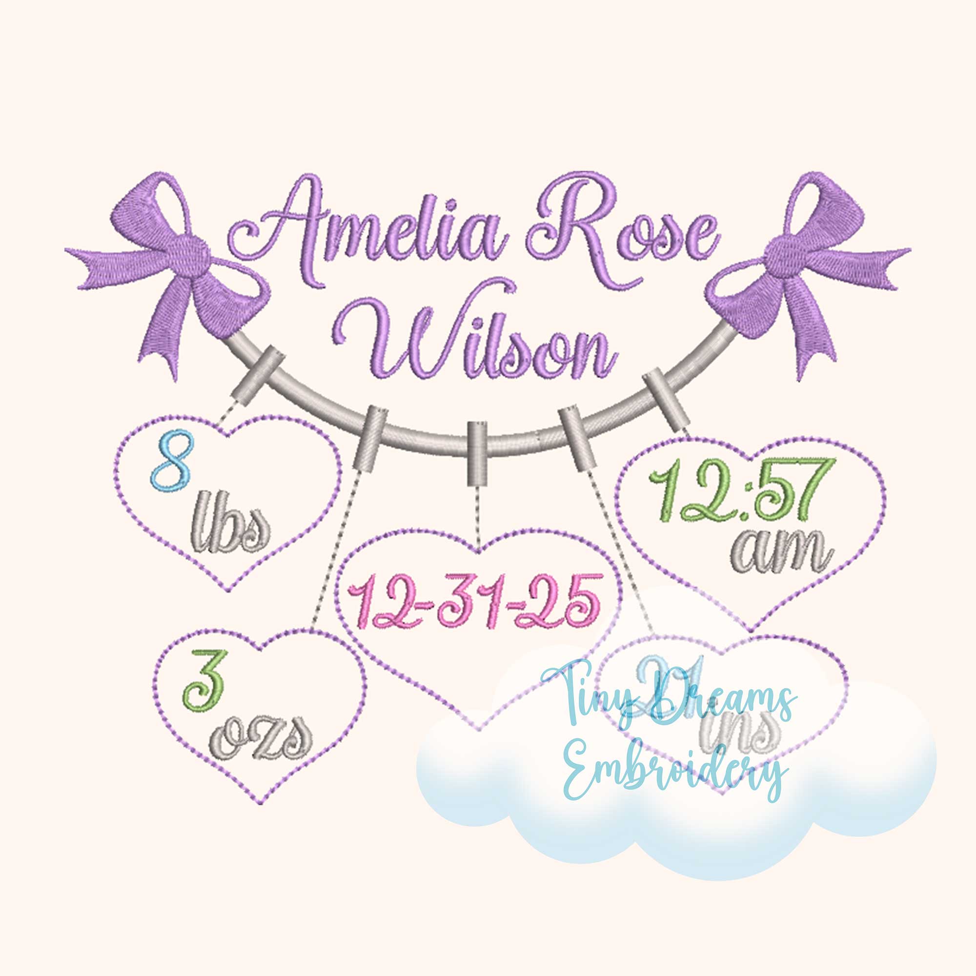 🧵 The personal baby information or font are not included in the design. The baby stats shown is for demonstration purposes