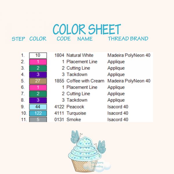 This digital machine embroidery design features a butterfly cupcake motif, blending butterflies and spring elements into a delightful kitchen-themed applique. Perfect for adding a whimsical and decorative touch to your embroidery projects, especially those centered around baking and spring themes.