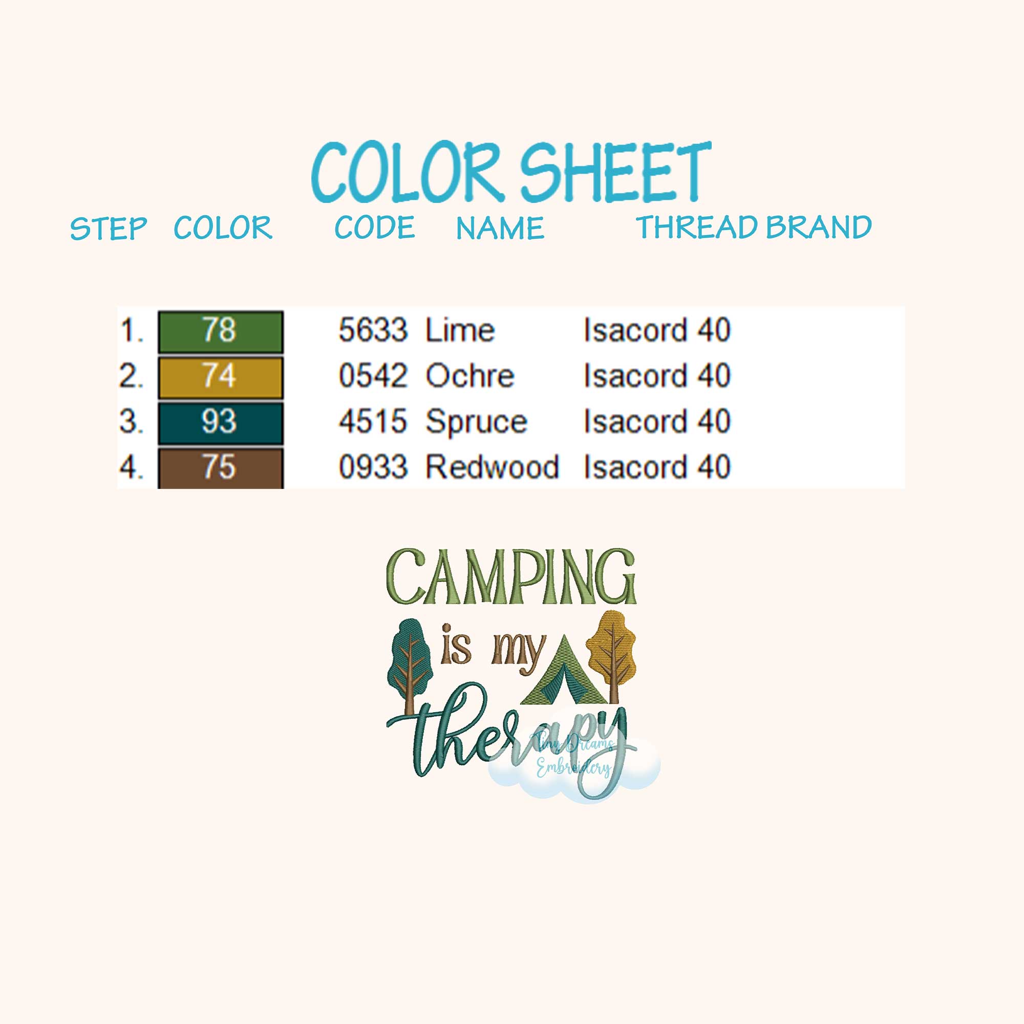 Bring the outdoors to your projects with this Camping is My Therapy Machine Embroidery Design, featuring a tent, pine trees, and camper life elements. Perfect for clothing, gear, home décor, and gifts for camping enthusiasts, this digital download adds a touch of nature to every stitch. 🏕️🌲