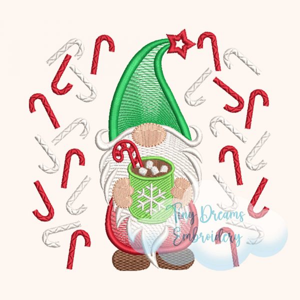 Christmas Gnome Digital Machine Embroidery Design Candy Cane Gnome Design Embroidery Candy Cane Embroidery Design Hot Cocoa Gnome Embroidery