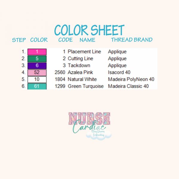 This Cardiac Nurse digital machine embroidery design features a heart applique, perfect for honoring cardiology and pediatric care nurses. Add a meaningful touch to your projects with this specialized and thoughtful embroidery design.