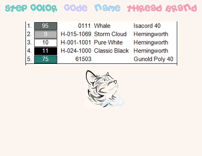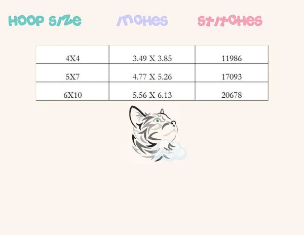 The design comes in the following formats: PES, DST, EXP, HUS, JEF, VIP, VP3, XXX