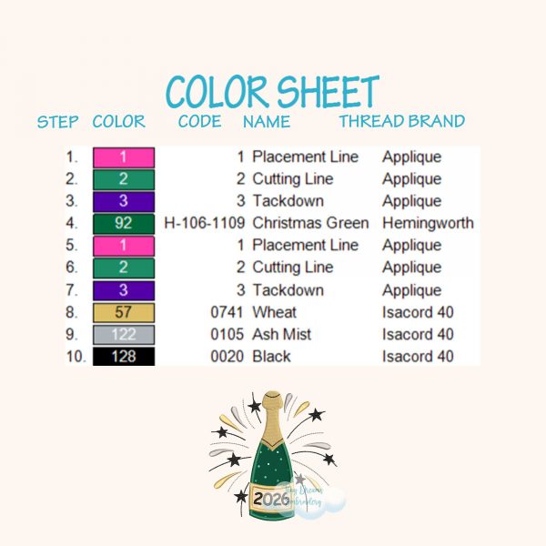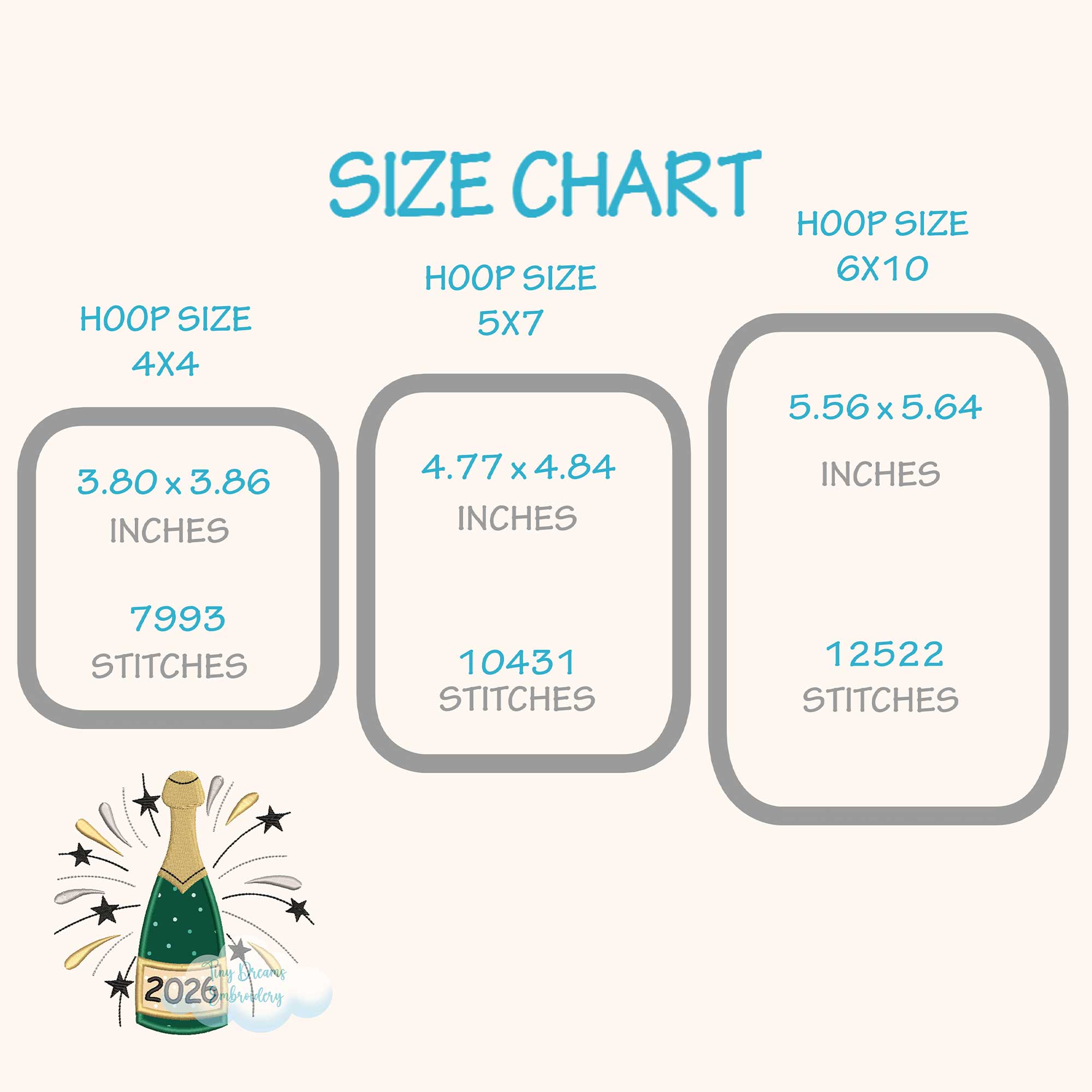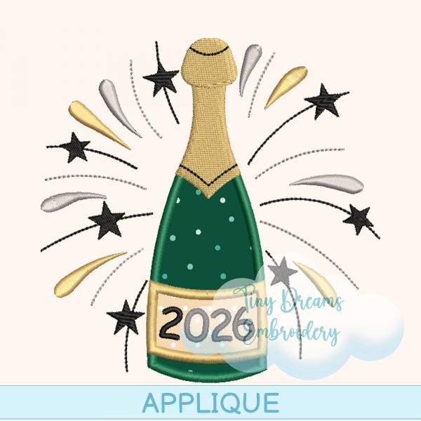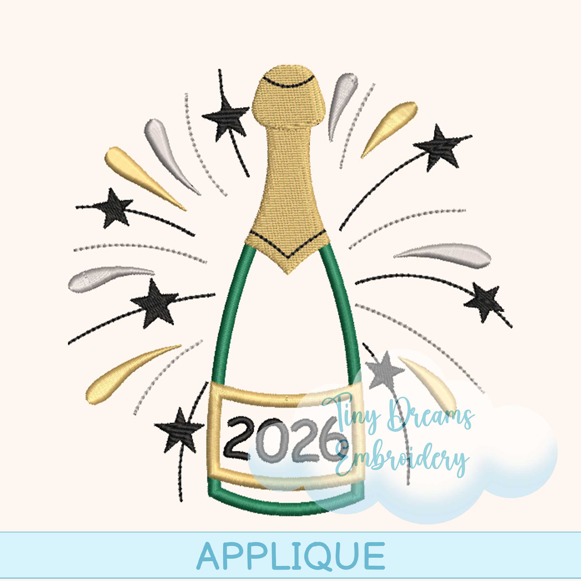 Toast to the new year with this Cheers 2026 Champagne Bottle Applique Embroidery Design, featuring festive fireworks and celebration details. Instantly download this machine embroidery design for joyful New Year’s Eve projects 🍾🎆