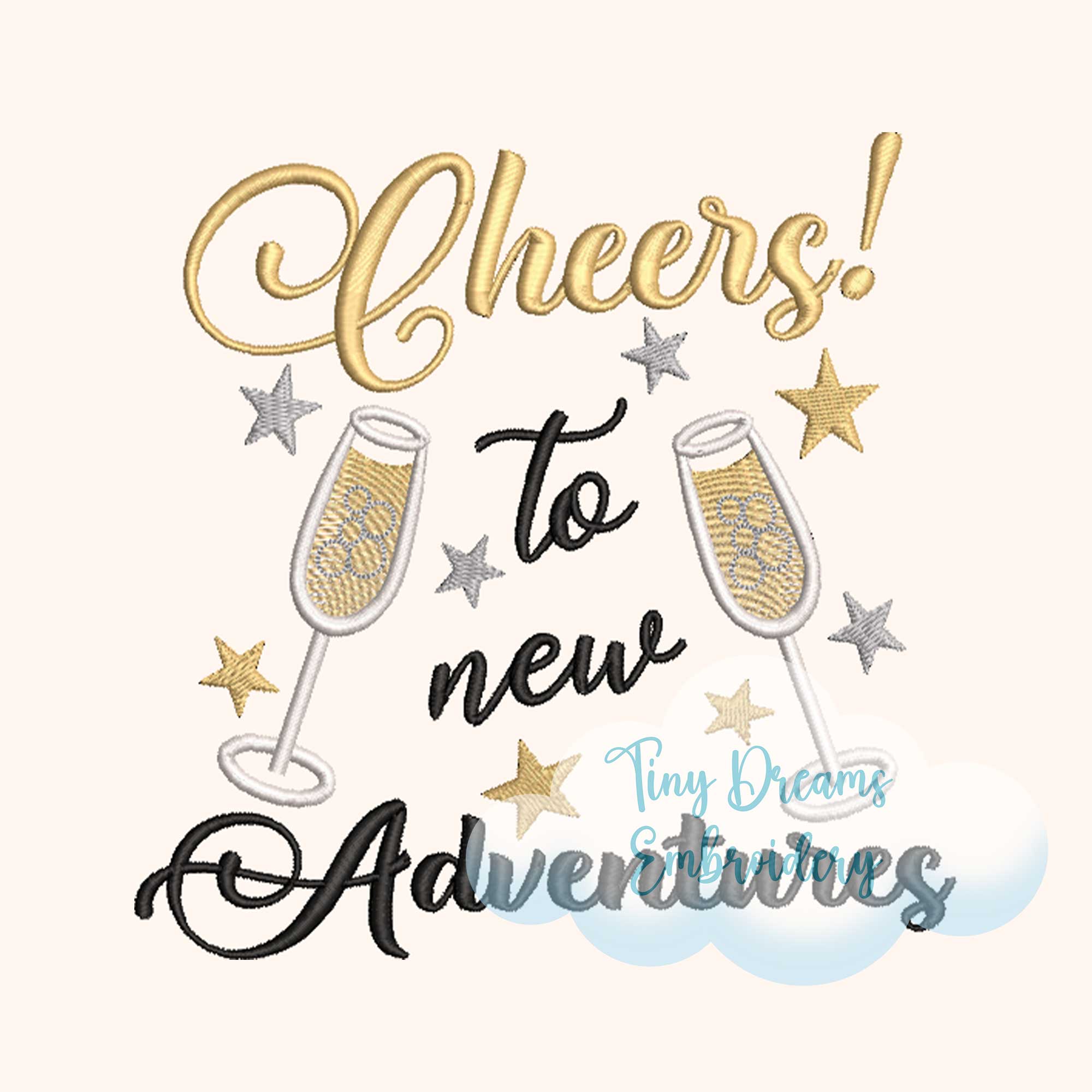 Ring in the new year with the “Cheers New Adventures 2026” embroidery design, featuring elegant champagne glasses perfect for festive apparel, party decor, or gifts. Instantly downloadable for joyful stitching and celebration! 🥂✨