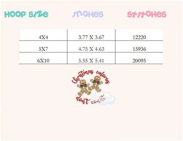 Be the first to review “Christmas calories don’t count gingerbread cookies embroidery design”