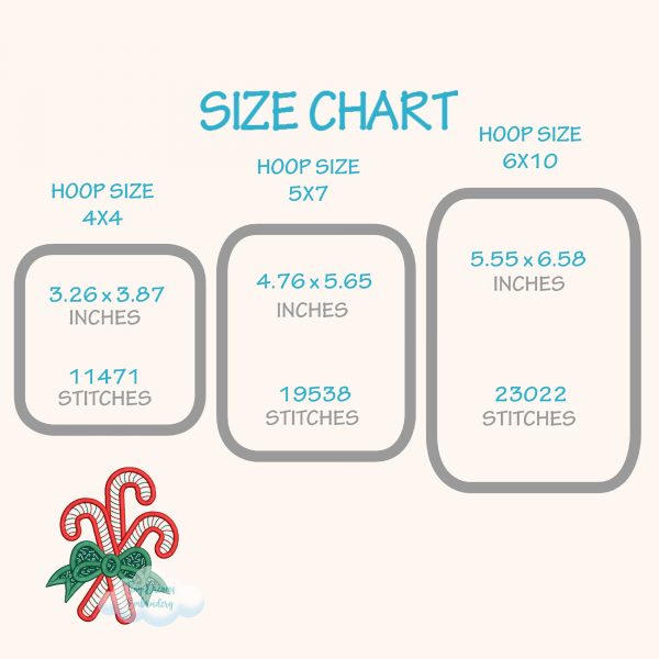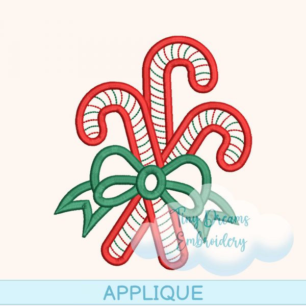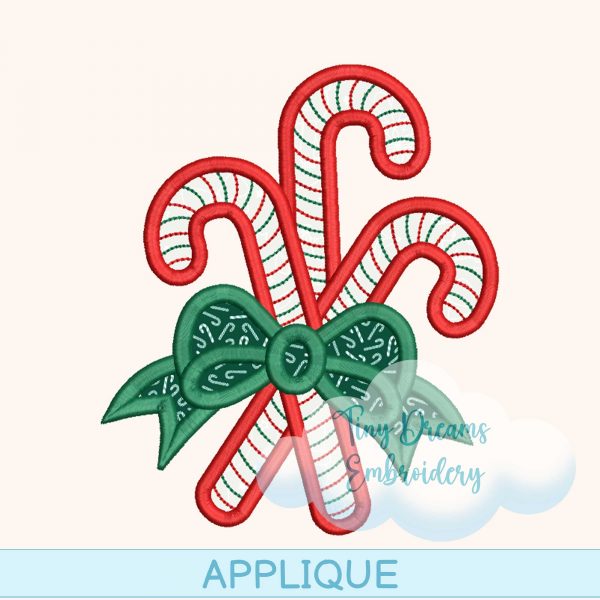 Add holiday charm with this Christmas Candy Cane Applique Digital Embroidery Design, featuring a festive bow and a delightful triple candy cane pattern. Perfect for adding sweet holiday accents to your seasonal embroidery projects!