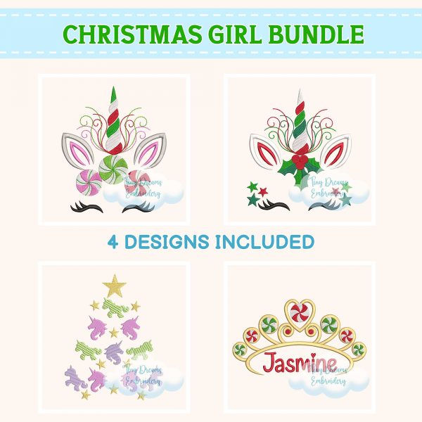 Bring holiday magic to your projects with our Christmas Girl 4 Designs Bundle, full of charm and festive fun. From unicorns to Christmas princesses, these designs make every stitch sparkle 🎄✨🦄