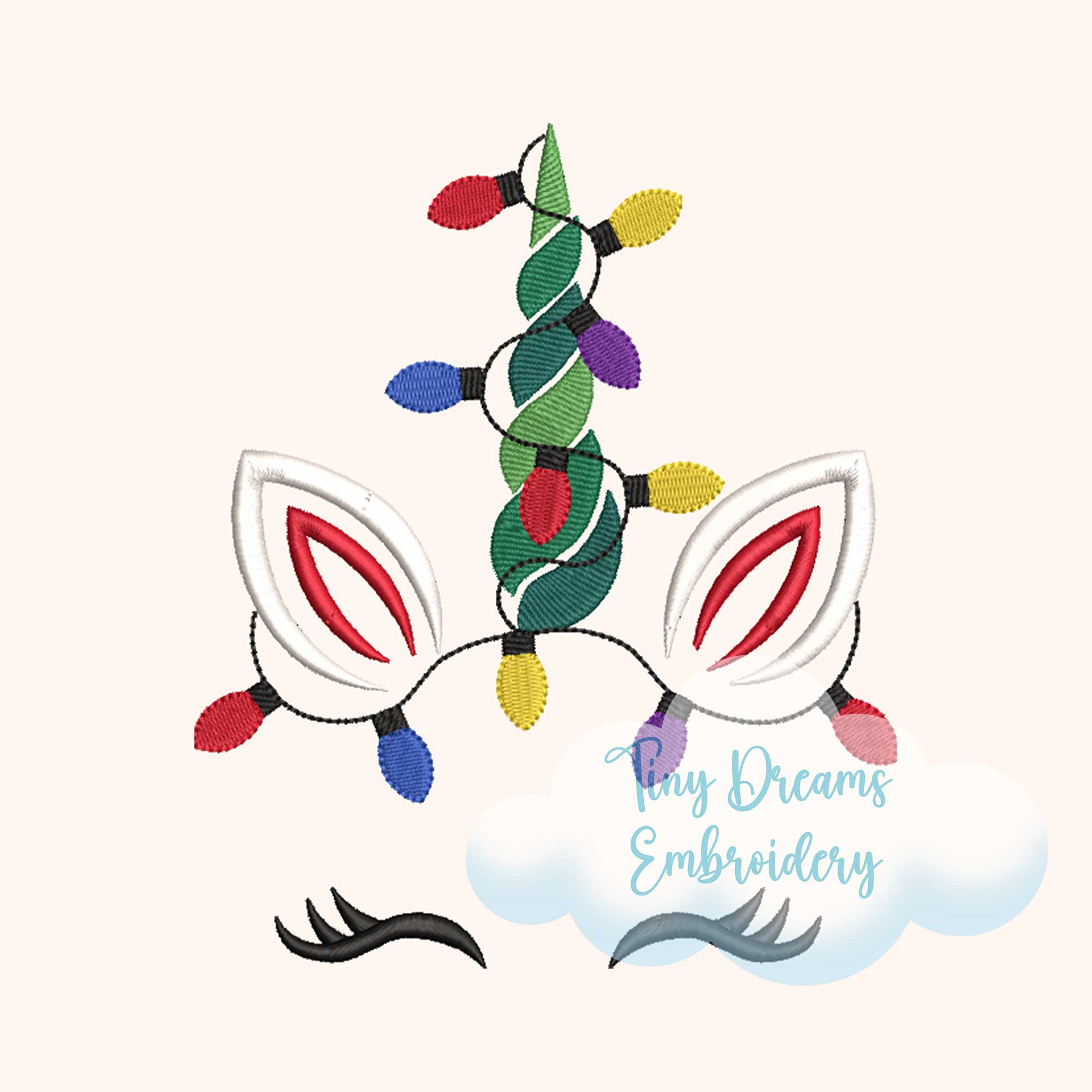 Christmas Lights Unicorn Digital Machine Embroidery Design Christmas Tree Unicorn Design Embroidery Cute Christmas Light Baby Unicorn Design