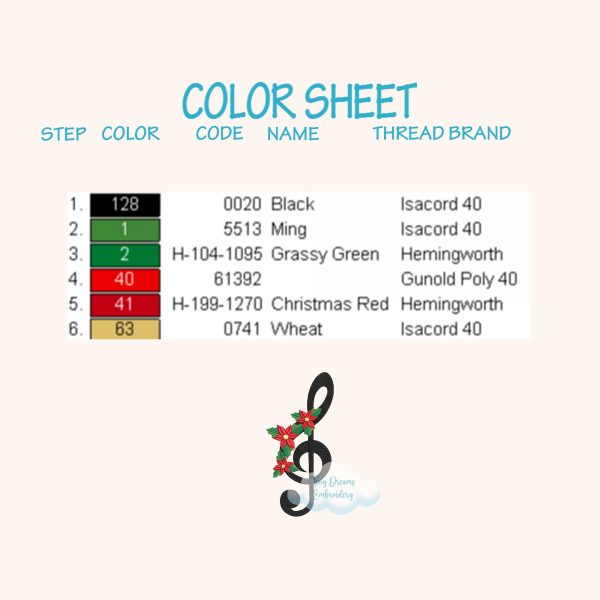 Celebrate the holidays with this Christmas Music Embroidery Design, featuring a treble clef and festive poinsettia flower. Instantly download this machine embroidery design for elegant and musical holiday projects 🎵🌺