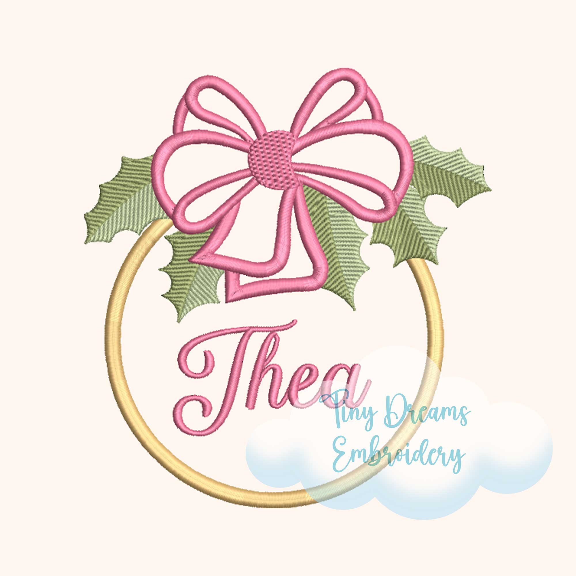 Add holiday charm with this Christmas Ornament Bow Embroidery Design, featuring mistletoe accents and space for a custom monogram or name. Instantly download this machine embroidery design for elegant festive projects 🎀🎄