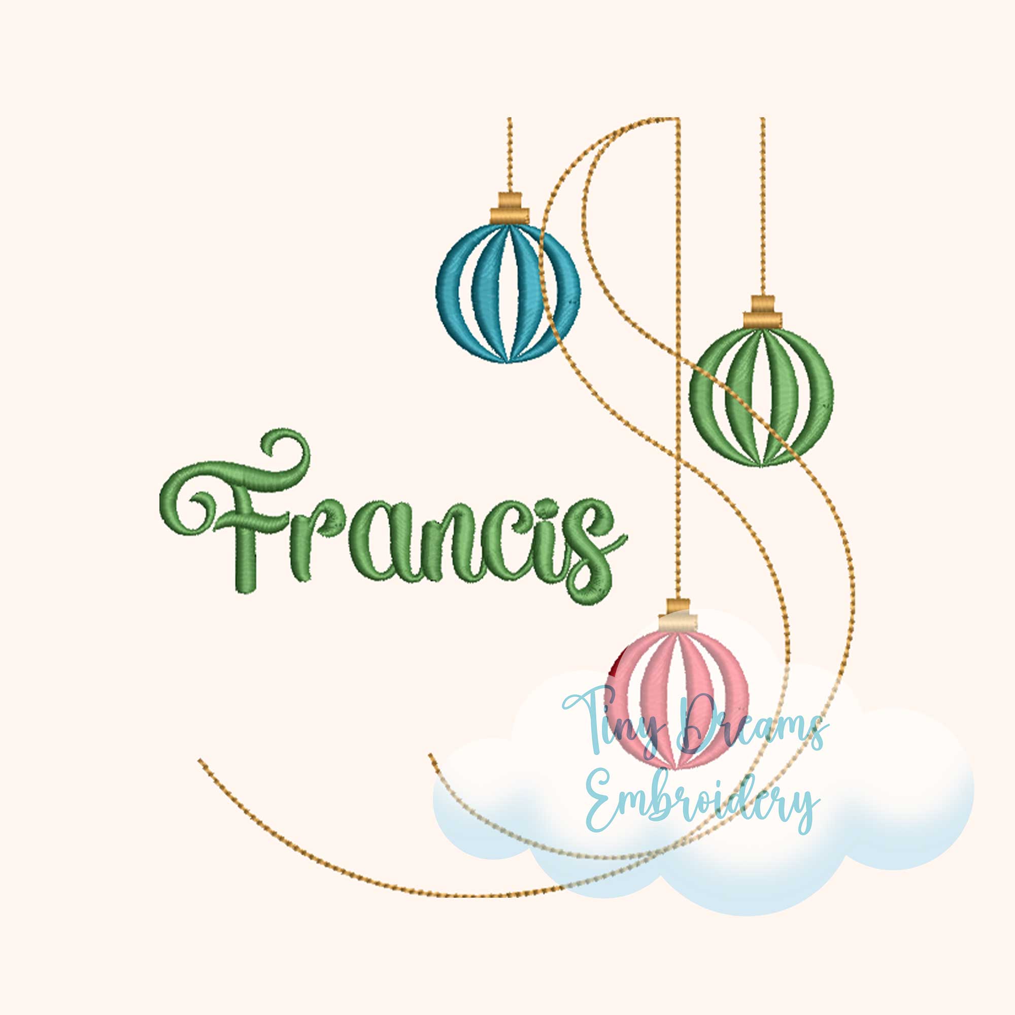 Add a personal touch to your holiday décor with this digital machine embroidery design for custom Christmas ornaments. Perfect for monograms or personalized names, it’s a festive addition to any garland or tree!