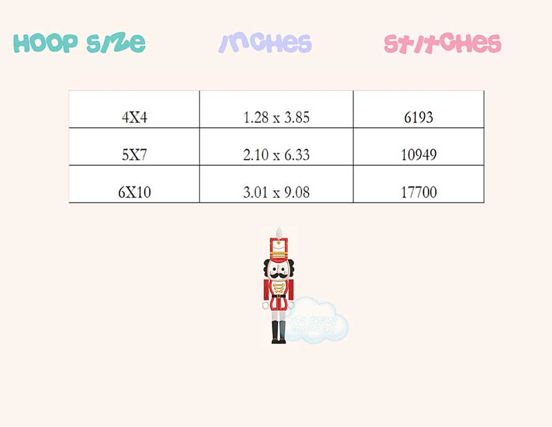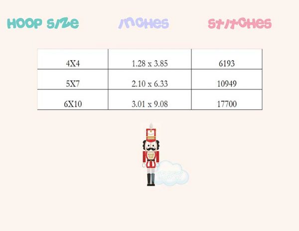 The design comes in the following formats: PES, DST, EXP, HUS, JEF, VIP, VP3, XXX