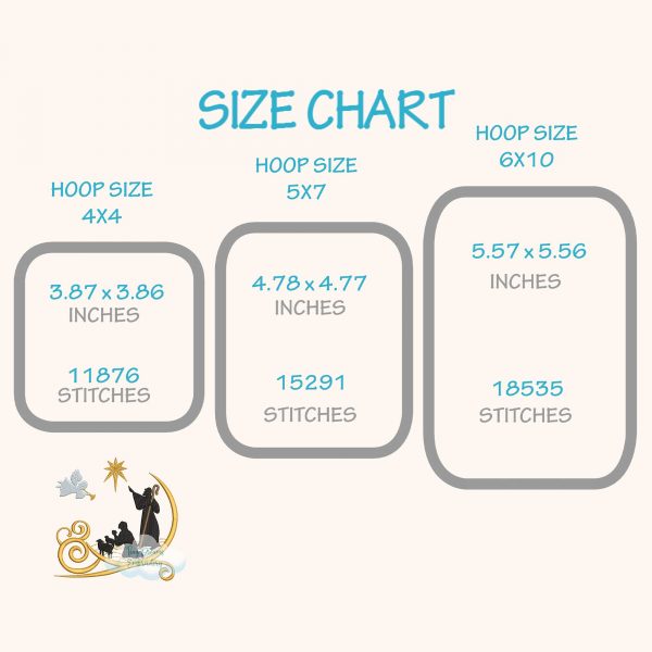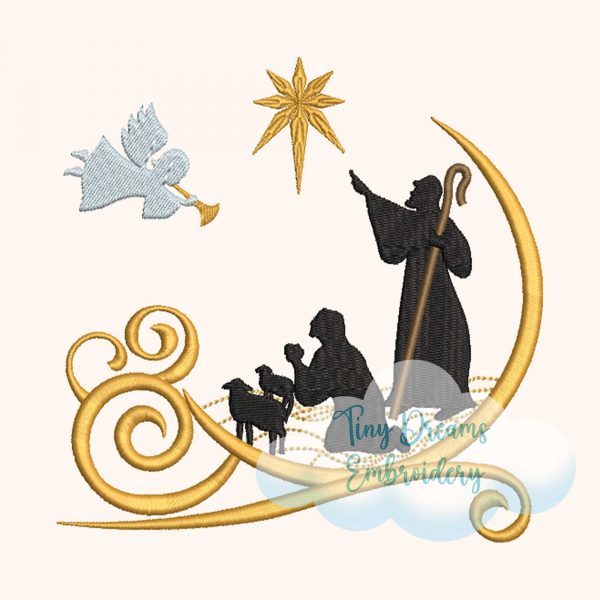 The Christmas Shepherds Digital Machine Embroidery Design beautifully complements the Nativity Bethlehem Design Embroidery, capturing the essence of the angelic presence with the Angel Embroidery Design. Together, they frame the serene moment of Baby Jesus’ arrival, under the guiding light of the Bethlehem Star