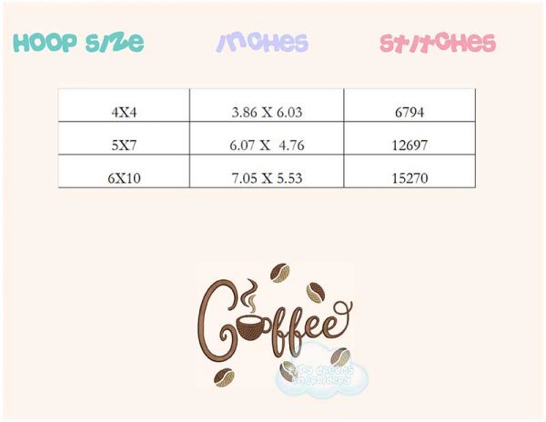 Be the first to review “Coffee word embroidery design”