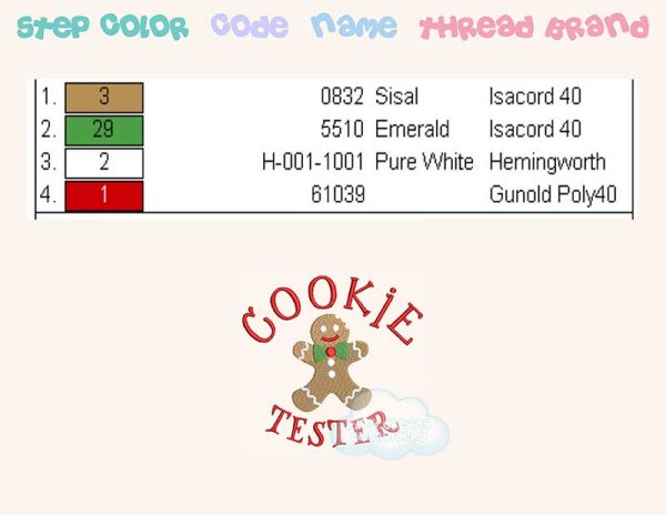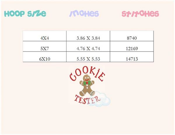 Cookie tester Christmas gingerbread cookie embroidery design